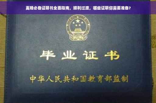 离婚时必备证明书全面指南,助你顺利过渡。包括必备证件、财产证明、子女抚养权证明等。了解离婚开哪些证明书更好,避免疏漏,保障自身权益。从身份证、结婚证到财产分割证明,每一样都至关重要。选择专业机构开具证明,确保真实有效,助力你顺利度过离婚过程。