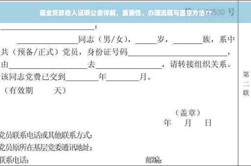 在当今社会,随着经济的发展和金融市场的繁荣,越来越多的人选择通过商业贷款来实现个人或企业的资金需求,而在申请商业贷款的过程中,收入证明公章作为重要的证明材料之一,其作用是不可或缺的,本文将详细介绍商业贷款收入证明公章的重要性及办理流程,帮助广大读者更好地了解并顺利办理商业贷款。