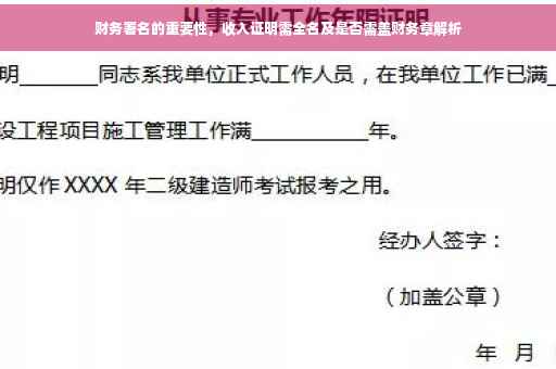 在现代社会中,随着经济的发展和就业市场的繁荣,收入证明成为了越来越多场合的必备文件,无论是办理贷款、申请信用卡,还是租房、落户等,都需要提供收入证明,而在这些场合中,财务署名的全名显得尤为关键,本文将深入探讨收入证明中财务署名全名的意义、作用以及相关规定,帮助读者更好地理解和运用这一重要文件。