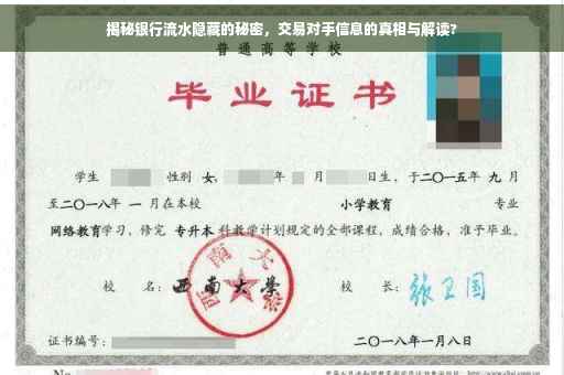 摘要:银行流水作为交易记录的重要证明,其隐藏的秘密引人关注。付款方的信息被隐藏,交易对手的真实身份难以得知。本文将揭示银行流水隐藏交易对手信息的真相,解读其中的秘密,帮助公众更加清晰地了解银行流水的真实面貌。