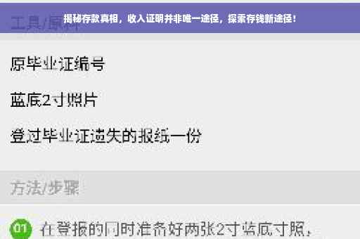 揭秘存款真相,收入证明并非唯一途径。存钱并不一定需要收入证明,还可以通过其他方式实现财富积累。合理规划个人预算、精打细算消费、投资理财等方式,都可以帮助人们有效地存钱。不必过分依赖收入证明,通过多种途径实现理财目标更为明智。