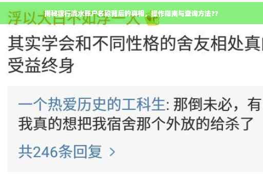 摘要:本文将介绍如何查账户银行流水名称,通过揭秘背后的真相与操作指南,帮助读者了解如何查询账户银行流水。本文将详细介绍查询流程,包括注意事项和常见问题解决方案,帮助读者轻松获取账户银行流水信息。无论您是需要核对账单还是了解账户情况,本文都能为您提供帮助。