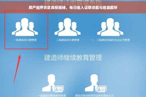 摘要:本文揭示了房产抵押贷款的收益与真相,通过房抵每日收入证明来介绍。探讨了房产抵押贷款的利弊,包括其灵活的贷款额度、较低的利率等优点,以及需要注意的风险和细节。让读者更加了解房产抵押贷款的实际效果,为需要贷款的人提供参考。