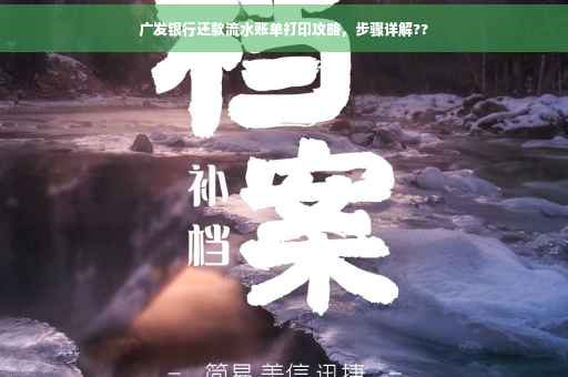 摘要:想要打印广发银行的还款流水账单,您可以按照以下步骤操作:首先登录广发银行网上银行或手机银行,进入账户查询页面,选择需要打印流水的账户,点击“打印流水”选项,选择时间范围并确认打印。确保账户有足够的交易记录以便顺利打印流水账单。此攻略助您轻松获取广发银行还款流水证明。