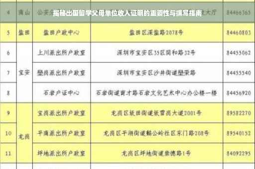 随着全球化的不断深入,出国留学已成为越来越多家庭的选择,在申请留学的过程中,父母单位收入证明作为重要的申请材料之一,其重要性不容忽视,本文将详细介绍出国留学父母单位收入证明的作用、内容、办理流程及注意事项,帮助广大留学家庭更好地了解和准备。