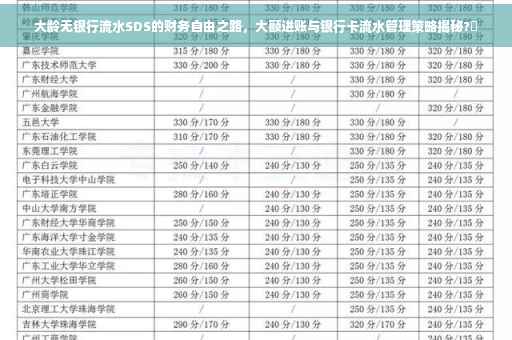 随着社会的发展和竞争的加剧,越来越多的人面临着大龄无银行流水的困境,他们或许曾经有过创业的梦想,或许因为各种原因失去了稳定的工作,导致无法获得银行的贷款或信用卡服务,这并不意味着他们失去了实现财务自由的机会,本文将围绕大龄无银行流水SDS这一主题展开,探讨如何跨越困境,实现财务自由。