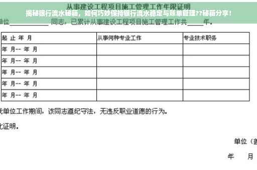 在当今社会,银行流水的重要性日益凸显,无论是申请贷款、信用卡,还是办理金融业务,银行流水都是一项重要的参考指标,如何保持银行流水稳定,成为许多人关注的焦点,本文将为你揭示一些实用的秘籍,帮助你在日常生活中巧妙管理银行流水。
