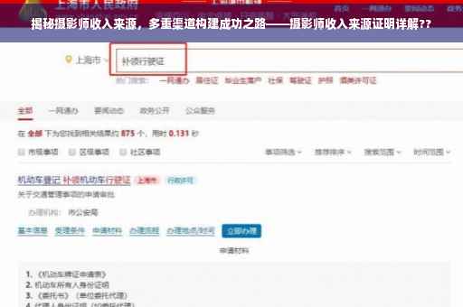 摘要:摄影师收入来源证明揭秘,多重渠道构建成功之路。摄影师的收入来源多样,包括摄影作品销售、版权收入、商业拍摄项目等。撰写收入来源证明时,应详细列举各项收入来源并提供相关证据,如销售记录、合同、授权书等。通过多重渠道构建成功之路,摄影师需不断提升技艺,拓展市场,加强品牌宣传,实现个人价值最大化。