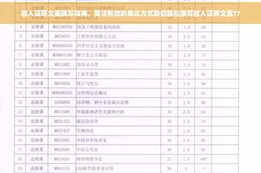 收入证明文案撰写指南,旨在提供简洁有效的表达方式。撰写收入证明时,应着重突出个人收入情况,采用简洁明了的语言表达,避免冗余复杂的句子结构。通过遵循简洁、准确的原则,能够迅速有效地完成收入证明文案的撰写。??本指南教你如何简洁有效地写收入证明文案,突出个人收入情况,避免复杂句子,快速完成撰写。