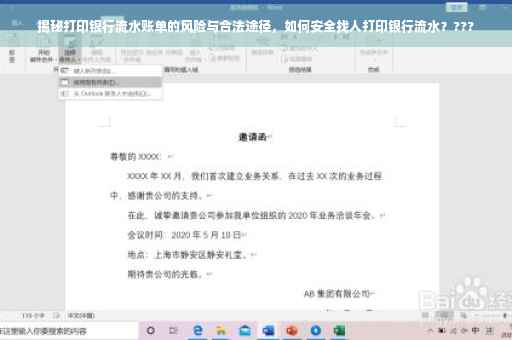 摘要:了解如何打印银行流水账单时,需注意可能涉及的风险和合法途径。在找人打印银行流水账单时,务必确保通过正规渠道和合法途径,避免个人信息泄露和遭受诈骗风险。谨慎选择可信赖的机构或银行,确保信息安全。提醒广大公众,保护个人信息,远离非法活动,共同维护金融秩序和社会稳定。