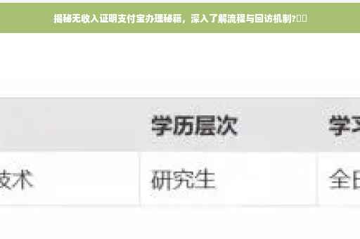摘要:本文将为你揭秘无收入证明如何通过支付宝办理,包括需要注意的细节和常见问题解答。文章将介绍支付宝对于无收入证明的处理方式,以及是否存在回访的情况。帮助你更好地理解和应对支付宝办理过程中的相关问题。