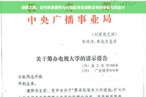 摘要:进修之路是不断提升自身知识和技能的重要途径。进修证书的重要性与价值在于证明个人在特定领域的学习成果和专业技能,增强职业竞争力。通过进修获得证书,不仅能够展示个人的学习成果,还能为未来的职业发展打下坚实的基础。本文将探讨进修证书的存在与否,以及其对于个人职业发展的深远影响。
