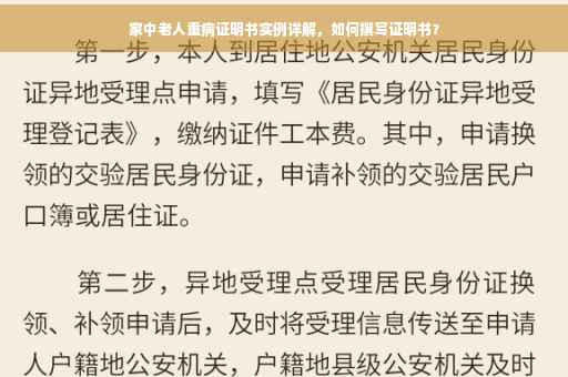 随着岁月的流逝,家中的老人可能会遭遇各种健康问题,当面临严重的疾病时,一份详细且准确的重病证明书对于患者及其家庭来说至关重要,本文将详细介绍家中老人重病证明书的内容要点及实例解析,帮助大家了解这一重要文件的格式与要求。
