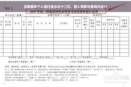 随着金融市场的持续繁荣,个人银行流水账单逐渐成为衡量个人经济实力的一项重要指标,一则个人银行流水达到十二亿的消息引起了广泛关注,本文将围绕这一主题,深度探讨这一惊人数字背后的真相、原因及其可能带来的影响。