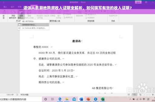 随着生活品质的不断提升和养老观念的转变,越来越多的退休人员选择在异地购置房产,享受不同的生活环境,在异地购房的过程中,收入证明成为了一个至关重要的环节,它不仅关系到贷款审批的顺利与否,还直接影响到房屋过户等关键步骤,本文将详细介绍退休人员异地购房收入证明的相关事宜,助大家一臂之力,顺利完成购房手续。