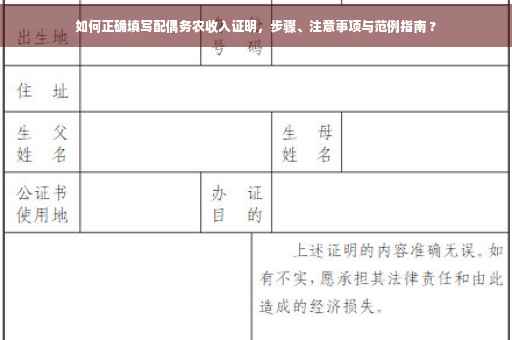 摘要:本文介绍了如何为务农的配偶正确填写收入证明,包括详细步骤和注意事项。文章指出,在填写过程中需要注意收入证明的格式、内容真实性以及与实际情况的一致性。文章还提供了关于家庭成员收入证明的写法,帮助读者更好地完成相关证明文件的制作。全文简明扼要,易于理解,为读者提供了实用的指导。