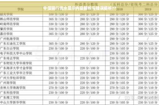 摘要:,,中信银行流水显示内容解析中发现错误,需引起注意。客户在查看流水时,应核对每笔交易记录,如发现有误,如金额、时间、交易方等信息不符,应及时联系银行进行核实和更正。确保流水账单的准确性对个人财务规划、贷款申请等至关重要。中信银行流水显示内容的准确性需得到保障,客户应关注并及时处理任何错误。