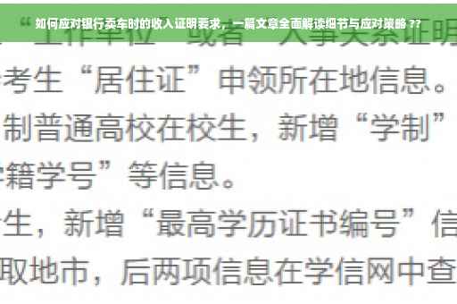 卖车时银行要求收入证明,不必慌张。应对方法详述于一篇文章之中。文章解读了所有细节,包括如何准备收入证明文件,如何向银行解释和展示自己的收入状况等。面对银行的要求,应理性对待,充分准备相关证明材料,以便顺利卖车。文章详细指导,让你轻松应对银行收入证明要求,不再为卖车烦恼。
