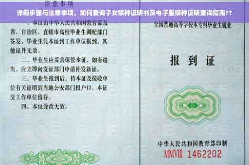 摘要:,,查询子女接种证明书电子版,步骤如下:首先访问当地卫生部门或疾控中心官网,找到“疫苗接种查询”或“儿童疫苗接种证明”等相关选项。输入孩子姓名、身份证号等必要信息,进行身份验证。验证成功后,即可查看并打印接种证明书电子版。注意事项包括确保信息准确无误,保护个人隐私,及时核实并保存证明。