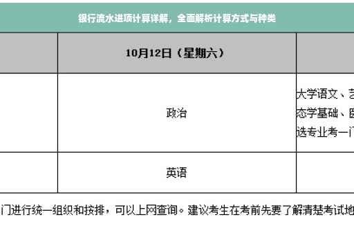 在现代社会,银行业务与我们息息相关,其中银行流水更是个人和企业经济活动的真实写照,在进行金融投资、贷款申请或税务申报等场合,了解银行流水的进项计算方式显得尤为重要,本文将详细介绍银行流水进项的计算方法,帮助读者更好地掌握个人财务情况,为个人发展做出明智决策。