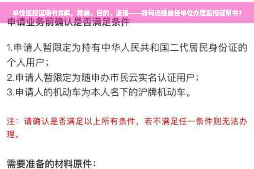 摘要:,,单位办监控证明书是为了确保工作场所的安全与秩序,通过对监控系统的运用进行证明。其背景是随着安全管理需求的提升,越来越多的单位开始重视监控系统的建设和管理。办理监控证明书的目的是为了确认监控系统的真实有效性,保障单位内部的安全。办理流程一般包括提交申请、审核材料、实地考察和颁发证书等环节。选择办理监控证明书的单位应具备信誉良好、专业性强、服务质量高等特点。