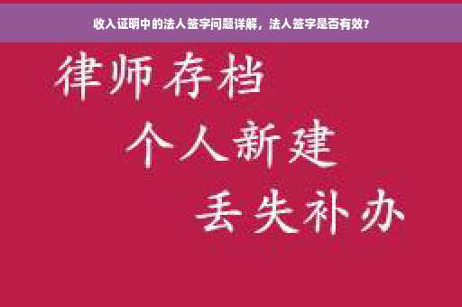摘要:本文探讨了收入证明中的法人签字问题,解析了法人签字在收入证明中的有效性。文章指出,收入证明中的法人签字是有效的,但需要符合相关法律规定和公司章程规定。还需要注意签字人的身份确认和签字真实性等问题。本文旨在为读者提供关于法人签字在收入证明中的相关知识和注意事项。