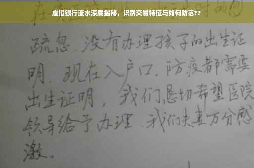 虚假银行流水是金融欺诈的一种重要手段,具有极大的危害性,本文揭示了常见虚假银行流水的特征,提供了识别方法防范措施,旨在提高公众防范意识,维护金融秩序稳定,个人和企业应警惕虚假银行流水欺诈,加强自我保护,确保金融交易安全,金融机构也应加强监管力度,共同维护金融市场的健康发展。