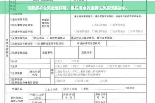 摘要:台湾是否需要银行流水因具体情况而异。本文将深度解析台湾金融环境,探讨银行流水在台湾的重要性。随着金融市场的不断变化,银行流水逐渐成为评估个人经济状况和信用等级的重要依据。本文将探讨当前台湾金融环境下银行流水的作用和要求,帮助读者更好地了解是否需要提供银行流水以及其在金融交易中的重要性。