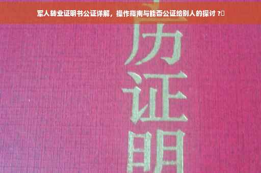 在某些情况下,如办理落户、就业、海外移民等,军人可能需要提供经过公证的转业证明书,公证是一种证明文书真实、合法的手段,经过公证的文书具有法律效力,能够更好地保障持有人的权益,对于军人而言,公证转业证明书能够有力证明其身份和服役经历,有助于顺利办理相关事务。