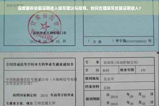 摘要:关于贫困证明中收入填写多少合适的问题,需结合实际情况进行深度解析与指导。填写时应考虑个人或家庭的实际经济状况、当地的生活水平以及贫困标准等因素。建议合理评估自身经济状况,同时参考当地贫困线标准,真实填写收入情况,以确保证明的准确性和有效性。