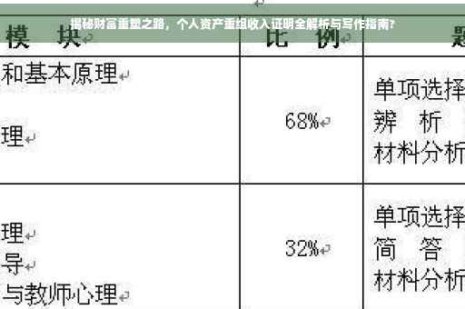 在个人资产重组过程中,收入证明是不可或缺的一环,收入证明能够展示个人的经济实力和信用状况,有助于提升金融机构对个人资产的信任度,从而获得更多的融资支持和资源,收入证明还可以作为个人在资产配置过程中的重要参考依据,帮助个人制定更为合理的投资计划。