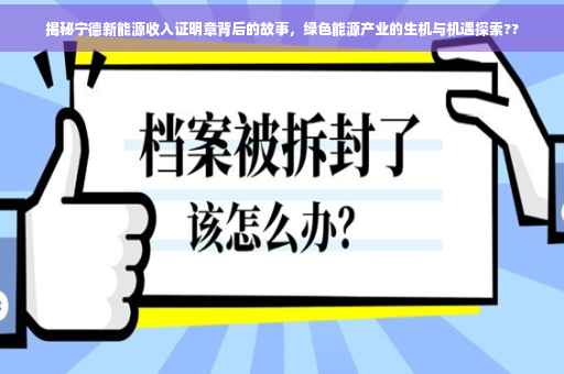 摘要:本文探讨了宁德新能源收入证明章的故事,揭示了绿色能源产业的蓬勃生机与机遇。文章将介绍宁德新能源的发展历程,并探讨其收入证明章的盖章流程及相关细节。通过深入了解,读者将能够感受到新能源产业的巨大潜力和发展前景。