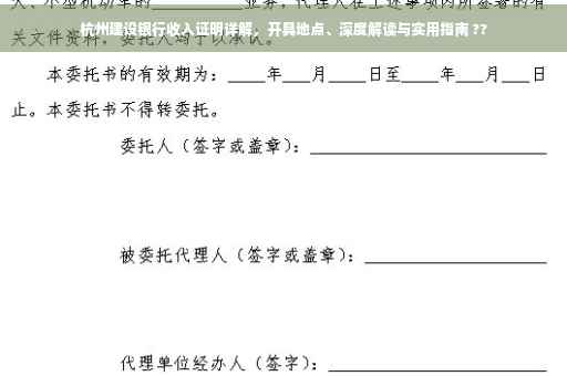 杭州建设银行收入证明是一项便捷、实用的服务,对于个人经济活动具有重要意义,本文详细介绍了杭州建设银行收入证明的办理流程、内容、应用场景及注意事项,希望能为广大市民提供帮助,在办理和使用收入证明时,市民应注意提供真实信息、保护个人隐私、及时更新信息,并合法使用证明。