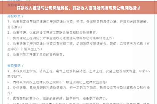 随着金融市场的发展和个人信贷需求的增长,贷款收入证明在贷款申请过程中的重要性日益凸显,公司风险也逐渐浮出水面,引起了广泛关注,本文将详细讨论贷款收入证明及公司风险的相关知识和风险点,帮助读者更好地了解并应对相关风险。