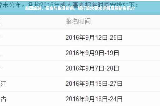 泰国旅游、投资和生活指南,详细介绍了银行流水的要求。在泰国,银行流水作为财务记录的重要证明,对于旅游、投资和生活都有一定作用。本文将解答是否需要提供银行流水的问题,并为您提供相关的知识和指导,帮助您更好地适应泰国的生活和工作环境。