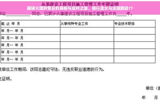 在火理财纠纷中,为何会涉及到法院和银行流水?这背后往往涉及到欺诈、挪用资金等违法行为,当投资者发现资金出现异常流转或损失时,往往会选择通过法律途径来维护自己的权益,这时,法院就会介入调查,而银行流水则成为调查的重要依据。
