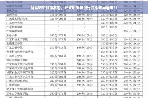 摘要:,,本文探讨了还贷明细与银行流水在解读个人财务健康状态方面的作用。还贷明细和银行流水虽然有所关联,但并不完全相同。通过对比分析,可以更全面地了解个人财务状况,从而做出更明智的财务决策。银行流水反映了个人所有收支情况,而还贷明细则主要关注贷款还款情况。了解这两者的差异有助于更好地管理个人财务,实现财务健康。