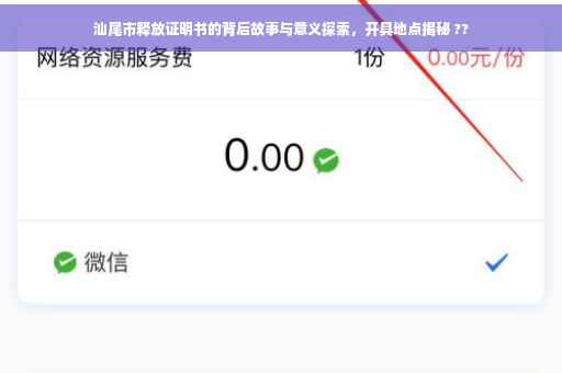 摘要:本文将介绍关于汕尾市释放证明书的故事和意义。通过深入了解这一证明书的背后,揭示其在法律和社会中的重要性。本文还将探讨汕尾市释放证明书如何开具,为读者提供相关信息和指引。该证明书不仅是法律程序的一部分,更是社会公正和法治进步的体现。