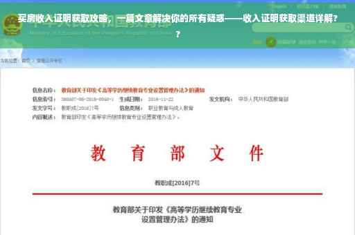 本文是关于如何获取买房收入证明的攻略。文章详细介绍了获取收入证明的渠道和步骤,包括向雇主申请、通过银行证明收入等方式。本文旨在帮助读者解决关于买房收入证明的疑惑,轻松获取证明文件,顺利购房。文章简洁明了,字数适中,适合需要办理买房收入证明的读者阅读。