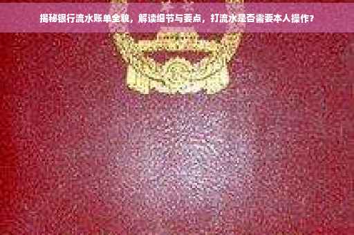 摘要:本文将揭示银行流水的全貌,解读银行流水账单中的各项内容。探讨打印银行流水账单是否需要本人亲自操作。通过阅读本文,读者将了解如何正确理解和使用银行流水账单,以及保护个人隐私和账户安全的重要性。