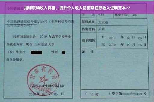 摘要:本文将介绍在职收入证明的重要性,揭示职场中的收入真相,并提供一些实用的建议,帮助读者在职场中提升个人收入。通过了解收入证明的作用和获取方式,以及掌握提升收入的方法和技巧,读者可以更好地规划自己的职业发展,实现个人价值的最大化。本文还提供了在职收入证明范本,为读者提供参考。