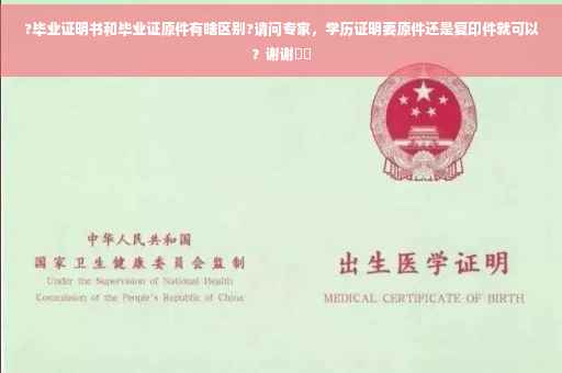 两者都是证明个人学历、文化程度的纸质书面材料。但是也有很大不同。毕业证原件是指由毕业院校颁发的,受国家承认认可(或者本校承认),有一定法律效力的公文书面证明。