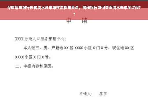 摘要:本文将深度解析银行审核流水账单的流程与要点,介绍按揭银行如何查看流水。银行会仔细核查申请人的流水账单,以评估其还款能力和财务状况。审核流程包括验证流水账单的真实性、分析收入来源与金额、检查支出情况以及与申请人提供的其他资料进行对比。了解这些流程有助于申请人更好地准备资料,顺利获得按揭贷款。