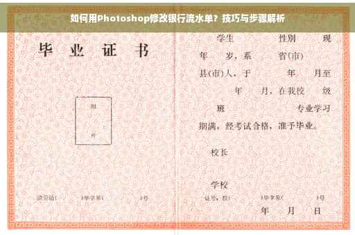 摘要:本文介绍了如何使用Photoshop软件修改银行流水单。通过Photoshop软件,可以轻松修改银行流水单中的文字信息,包括日期、交易金额等。文章还提供了相关的注意事项和技巧,以帮助读者更好地完成修改操作。需要注意的是,修改银行流水单可能涉及法律风险,请谨慎操作。