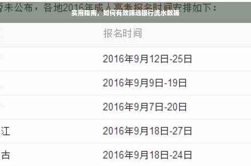 在现代社会,银行流水作为个人经济活动的记录,越来越成为贷款、信用卡申请、财务审计等方面的重要参考依据,面对繁杂的银行流水记录,如何有效筛选关键信息,提高办事效率,成为许多人关注的焦点,本文将围绕如何有效筛选银行流水展开详细阐述,帮助大家轻松掌握筛选技巧。