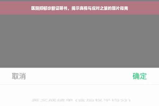 摘要:医院的抑郁诊断证明书揭示了抑郁症的真相,并提供了应对之道。这份证明书不仅关乎个人心理健康,更是对全社会对抑郁症认知的一次重要提醒。通过这份证明书,人们可以了解到抑郁症的症状、诊断和治疗方法,进而采取积极的应对措施,帮助患者走出阴霾,重拾生活的信心和希望。图片标识也提醒人们关注抑郁症问题的重要性。