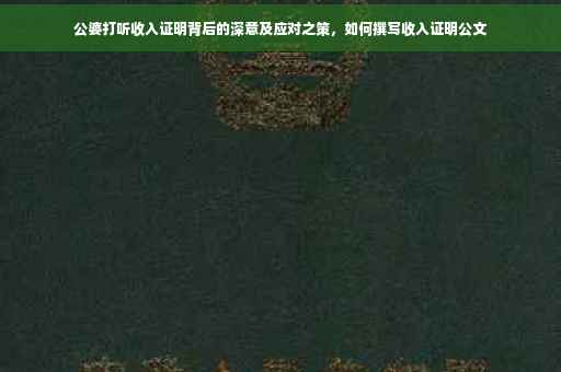 收入证明在夫妻关系中具有重要意义,它不仅反映一个人的经济实力,还体现个人的价值和社会地位,面对公婆的询问,我们可以采取以下应对方法: