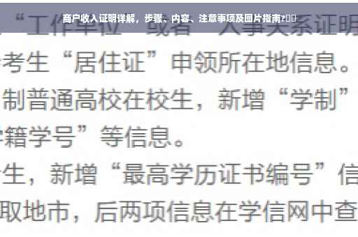 摘要:本文将详细介绍商户收入证明的步骤、内容和注意事项。商户在提供收入证明时,需遵循一定流程,确保信息真实、完整。本文将指导商户如何准备收入证明,包括需要提供的具体信息和注意事项,以帮助商户顺利开具收入证明。本文还附带了相关图片,以便更直观地了解收入证明的相关内容。