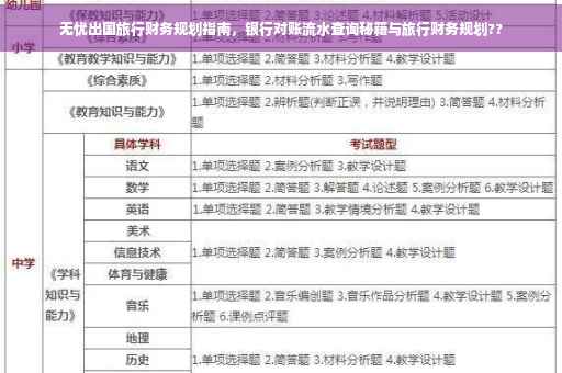 随着生活水平的提高,越来越多的人选择出国旅行,体验不同的文化和风土人情,在享受异国风情的同时,财务安全问题也不容忽视,银行对账流水作为财务规划的重要一环,对于出国旅行的人来说至关重要,本文将详细介绍出国旅行银行对账流水的重要性及实际操作方法,助你打造无忧旅行财务规划。