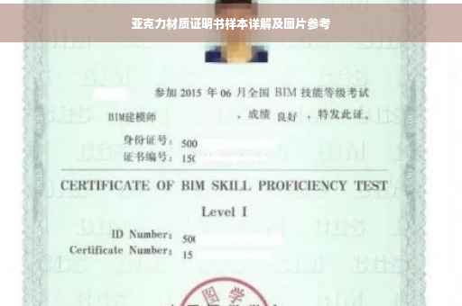 (以下是一个亚克力材质证明书的样本,供您参考)